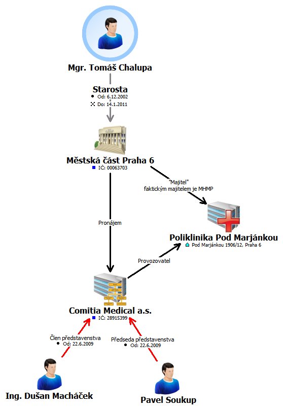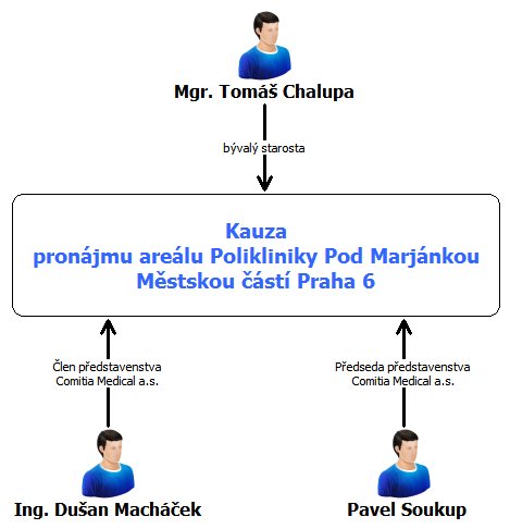 V listopadu 2010 podepsal za Městskou část Praha 6 její starosta Mgr. Tomáš Chalupa se soukromou společností Comitia Medical nájemní smlouvu o pronájmu areálu Polikliniky Pod Marjánkou s ročním nájmem ve výši půl milionu korun, a to na dobu 30 let. Nájem představuje 7 korun za metr čtvereční nebytových prostor za měsíc!