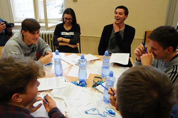 40 studentů rozdělených do 5 týmů se pokusilo jednoduchým způsobem sobě i svým kolegům představit práci zastupitele svého města a zaměřili se na prosazení svého návrhu usnesení k aktuálním tématům.